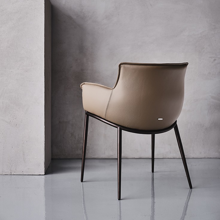 Krzesło Rhonda od Cattelan Italia, zaprojektowane przez Luca Signoretti w 2020 roku, to synonim naturalnej elegancji i komfortu. Zaokrąglone kształty foteli i stołków z rodziny Rhonda idealnie nadają się do wyposażenia wygodnych i przytulnych designerskich jadalni. Miękkie fałdy zdobiące wnętrze oparcia kontrastują z rozciągniętą ramą otulającą ciało, tworząc wyjątkowy efekt wizualny.