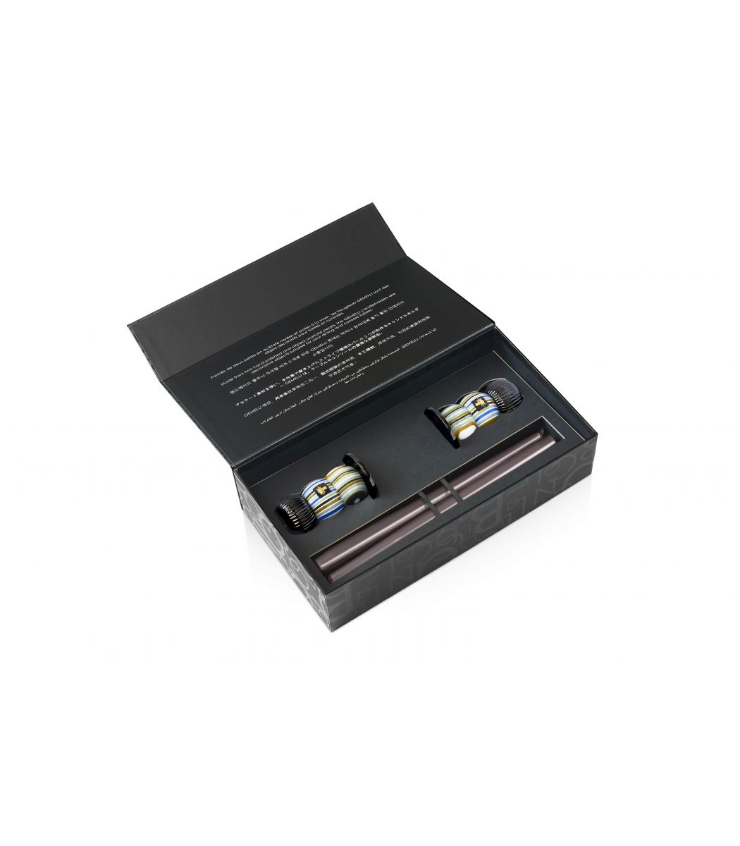 Świeczniki Gemelli Bronze od Baobab Collection to kwintesencja luksusu i rzemiosła artystycznego. Każdy świecznik jest unikatowym dziełem, gdzie pasiaste, kolorowe kule tworzące korpus zostały wykonane z żywicy, rzeźbione i polerowane ręcznie przez doświadczonych jurajskich rzemieślników.