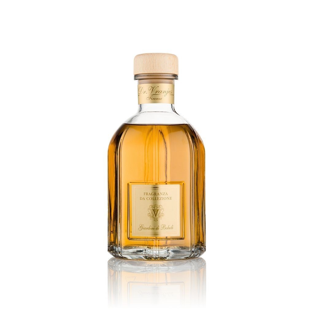 Giardino di Boboli Dr. Vranjes to balsamiczny i kwiatowy zapach do wnętrz, idealny do relaksu. Połączenie bukszpanu, mięty, narcyza i róży z nutą cyprysu w kryształowej butelce.