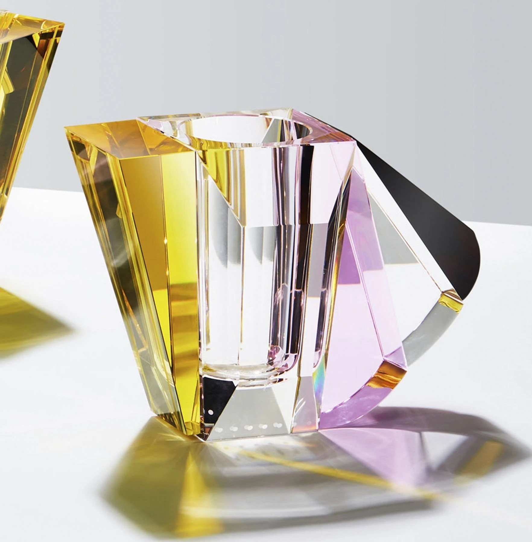 Wazon Manhattan od Reflections Copenhagen łączy geometryczne kształty z ręcznie szlifowanym kryształem. Inspirowany architekturą Manhattanu, tworzy wyjątkową grę kolorowych refleksów. Idealny dodatek do nowoczesnego wnętrza.