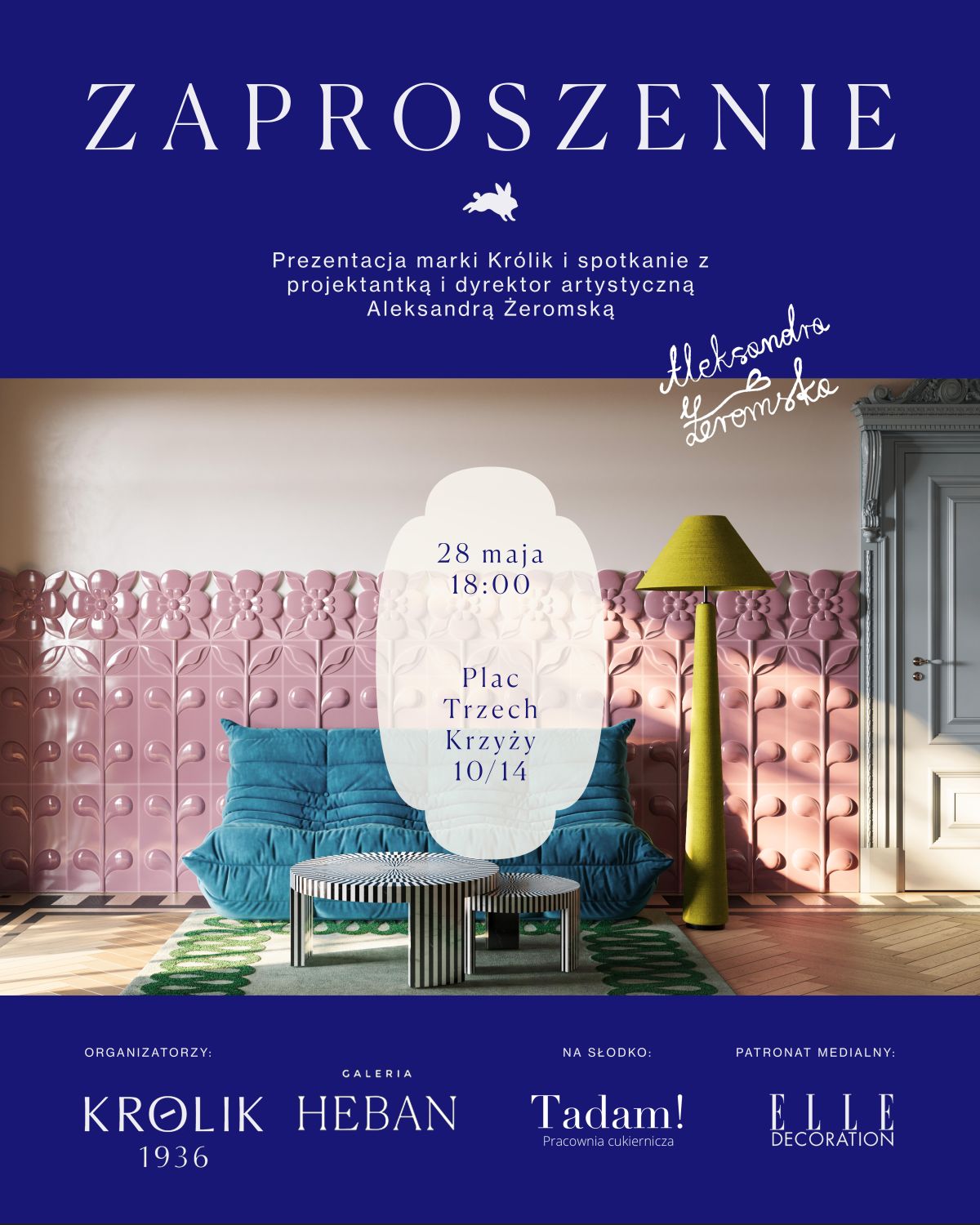 Tego wieczoru naszym wyjątkowym gościem będzie Aleksandra Żeromska – projektantka i dyrektor artystyczna marki Królik 1936. Jej talent, wrażliwość na formę i nieszablonowe podejście do projektowania wnętrz na pewno Was zachwycą. Będziecie mieli okazję poznać proces twórczy, który stoi za nową kolekcją, posłuchać o inspiracjach oraz zobaczyć premierowo wyjątkowe produkty.